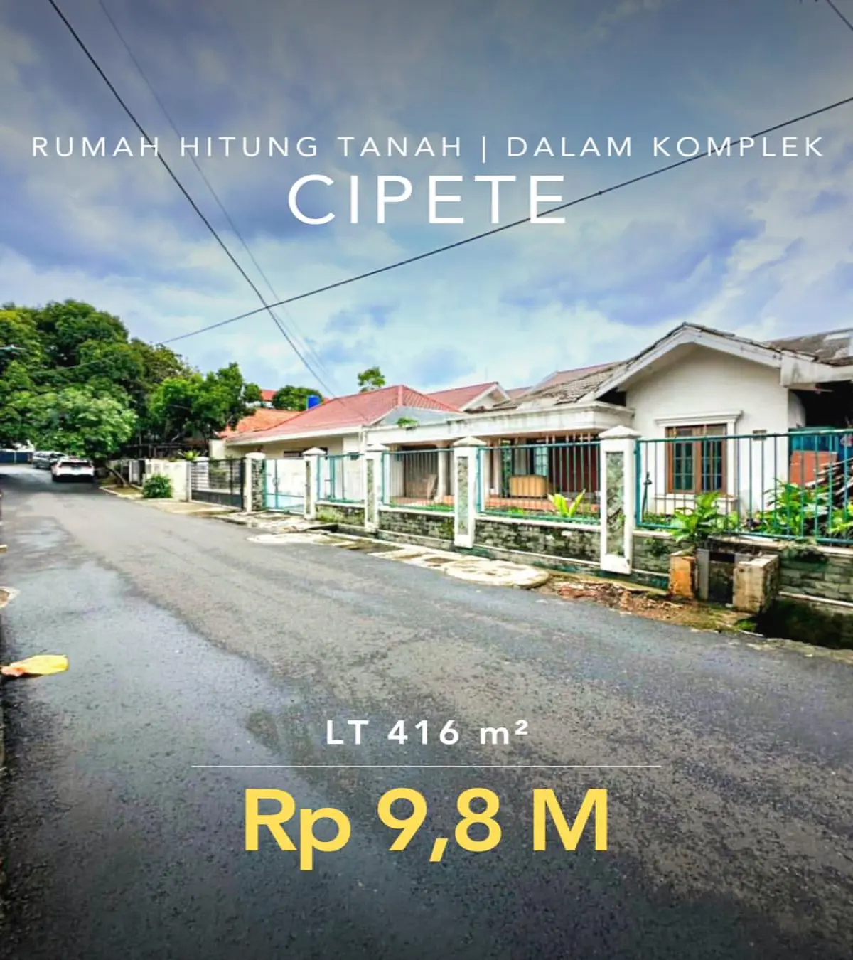Rumah Dijual Cipete, Jual Tanah Cipete Jakarta Selatan, Properti Hitung Tanah 416m2, Investasi Townhouse Cipete, Rumah Harga Turun 1 M, Tanah Dalam Komplek SHM.