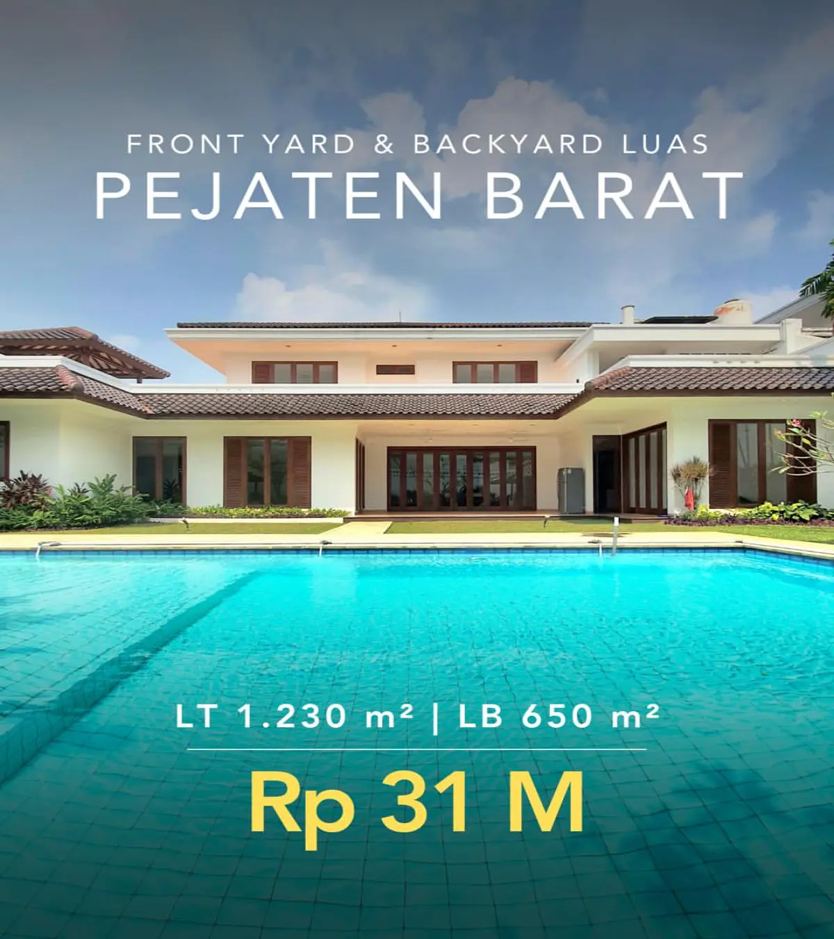 Kata Kunci: Rumah Dijual Pejaten Barat, Private Pool Jaksel 10 Miliar, Diskon Properti Mewah, Modern Tropical House, SHM IMB Pejaten, LT 400m2.